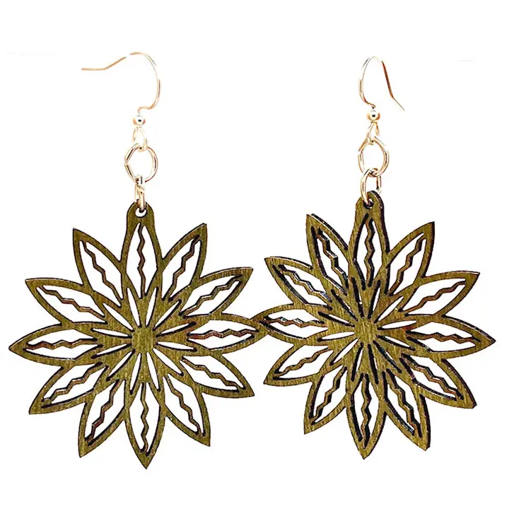 These trendy earrings are made from wood. Earring is 1.5″ x 1.5″.